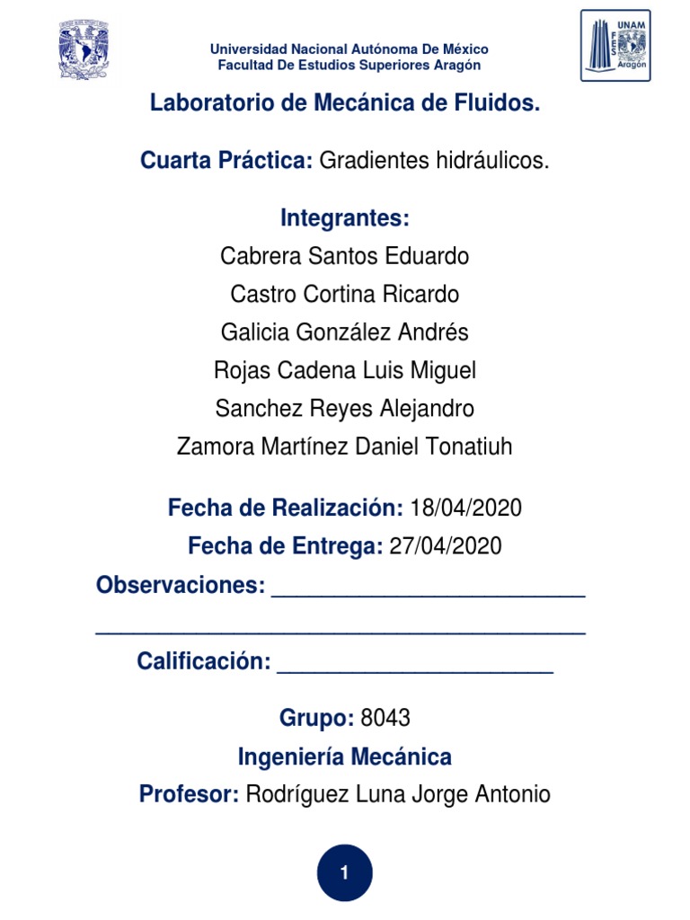 Cuarta Práctica: Gradientes hidráulicos.