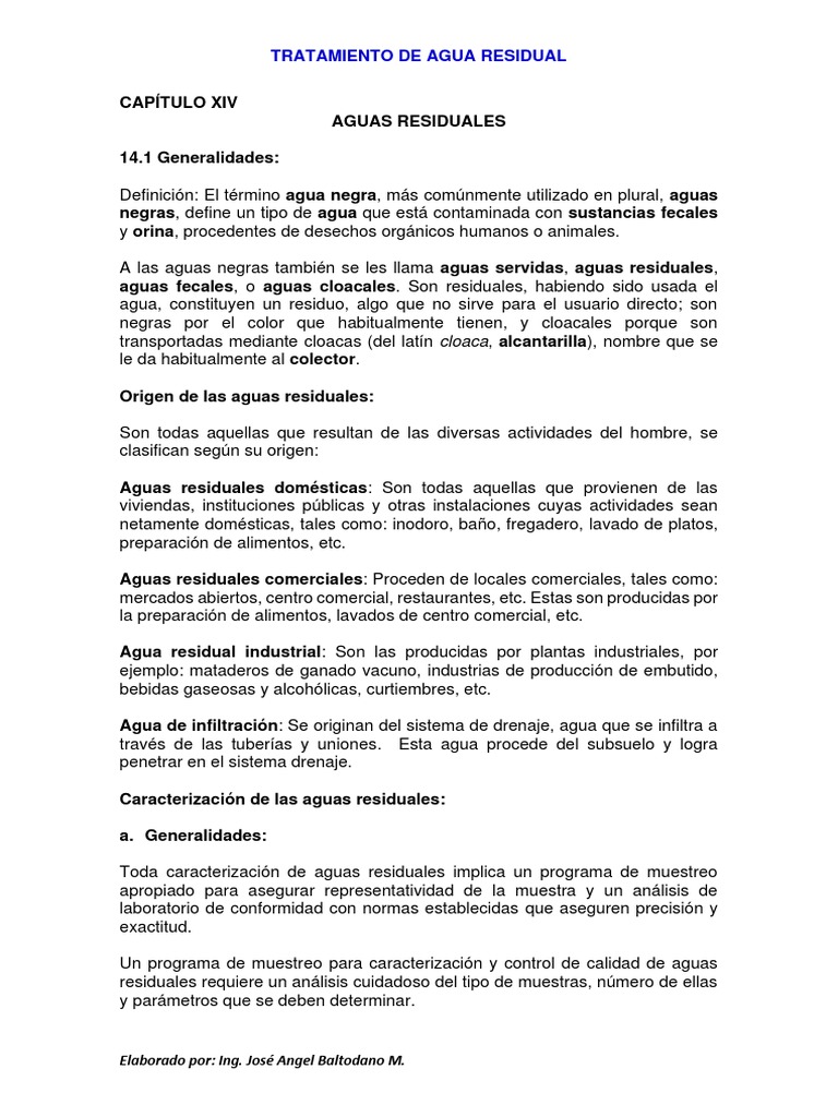 Los parámetros que deben medirse para caracterizar el agua residual por medio