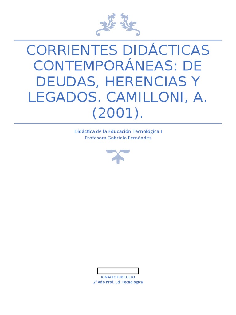 CORRIENTES DIDÁCTICAS CONTEMPORÁNEAS: DE DEUDAS, HERENCIAS Y LEGADOS. CAMILLONI, A. (2001).