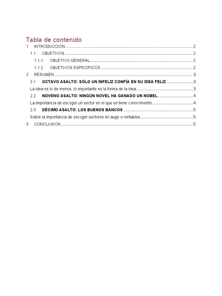 Analizar las ideas principales de cada asalto que ayudaran para poder ser un buen