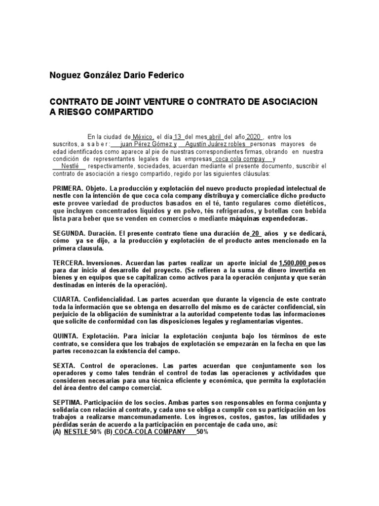 CONTRATO DE JOINT VENTURE O CONTRATO DE ASOCIACION