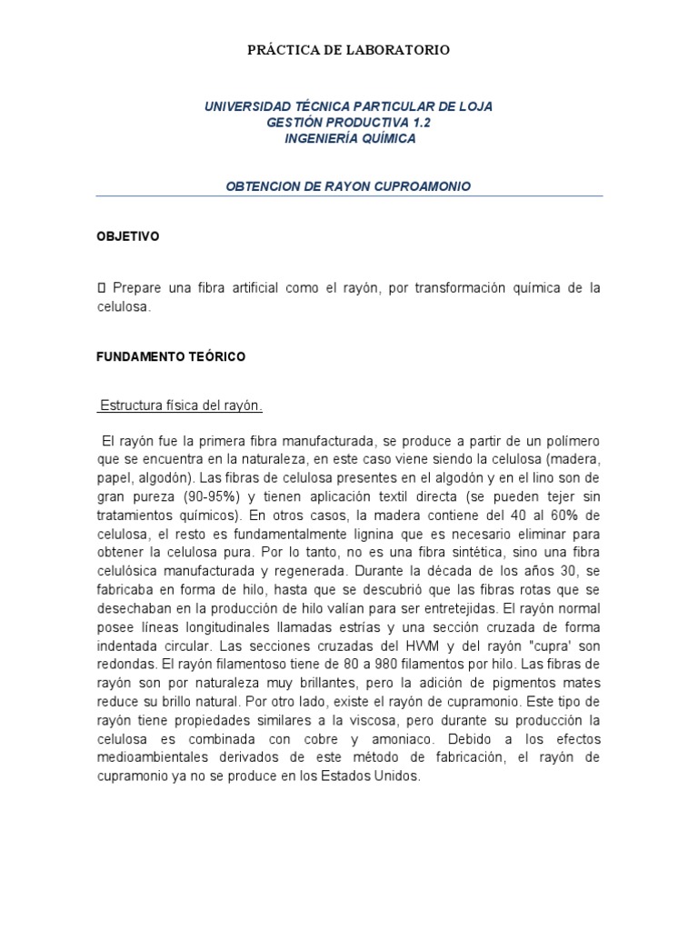 OBTENCION DE RAYON CUPROAMONIO