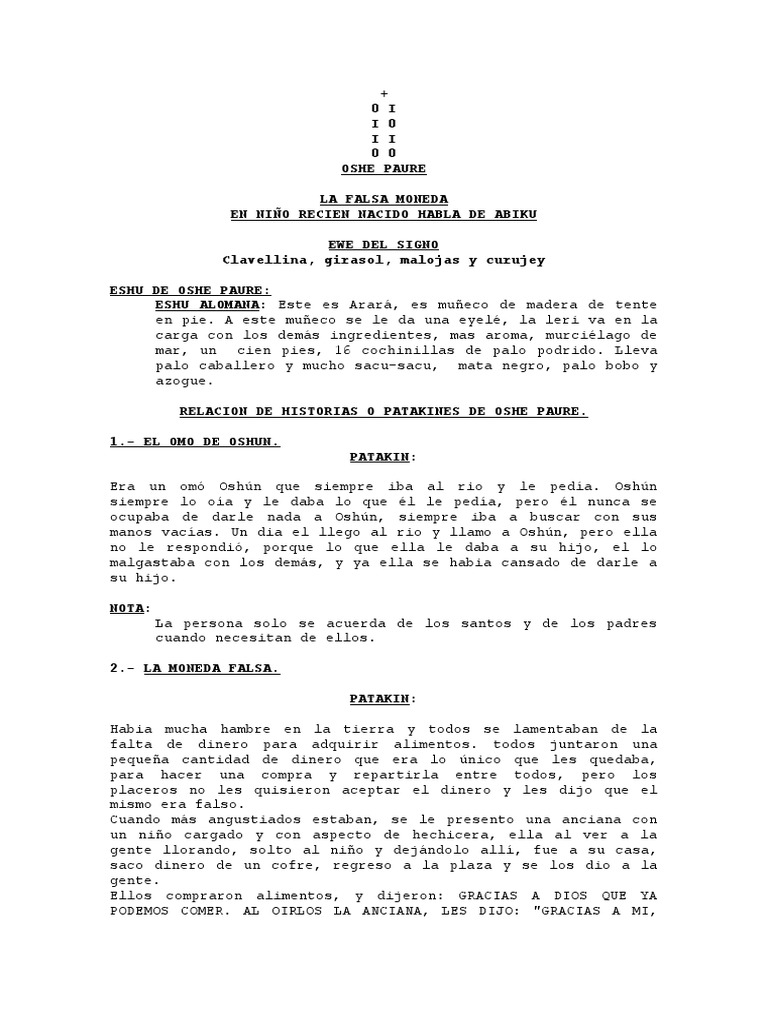 RELACION DE HISTORIAS O PATAKINES DE OSHE PAURE.