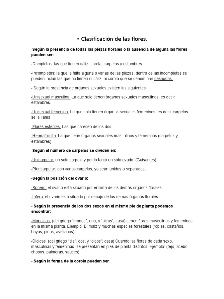 Según la presencia de todas las piezas florales o la ausencia de alguna las flores