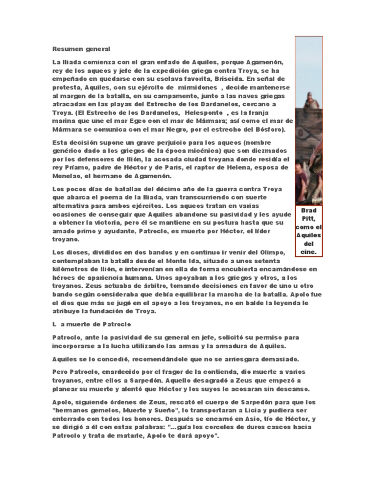 que abarca el poema de la Iliada, van transcurriendo con suerte