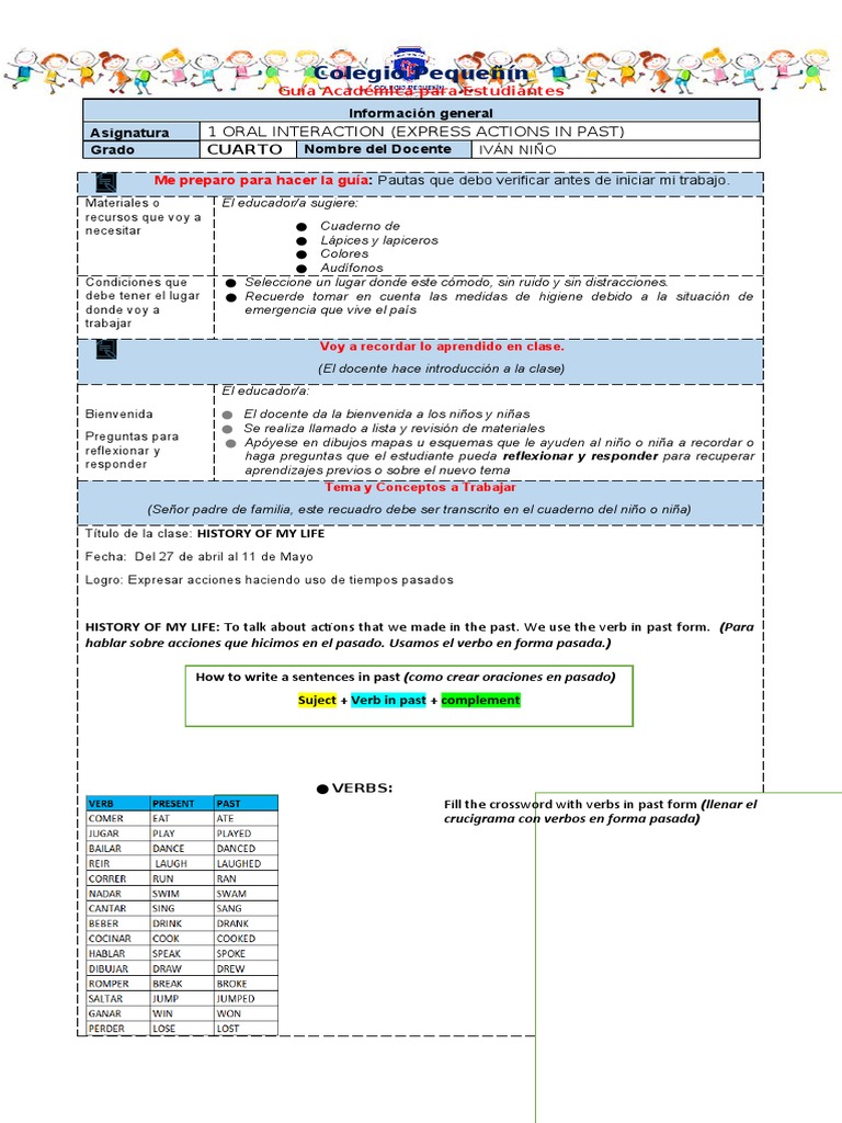 Logro: Expresar acciones haciendo uso de tiempos pasados