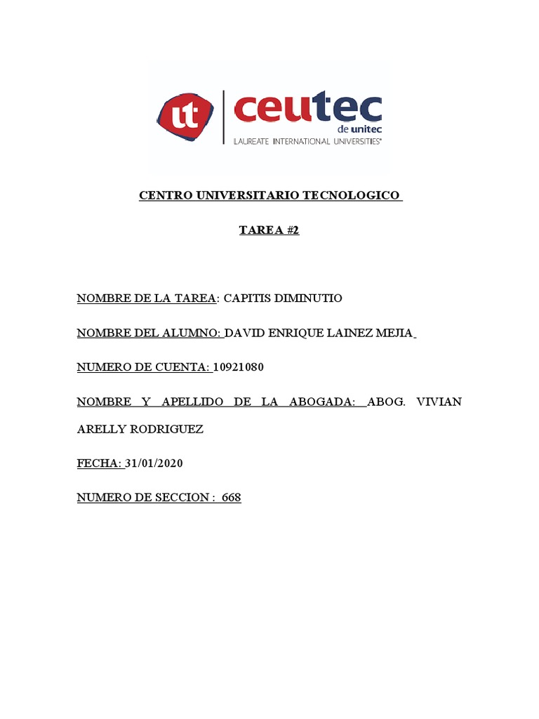 NOMBRE DE LA TAREA: CAPITIS DIMINUTIO