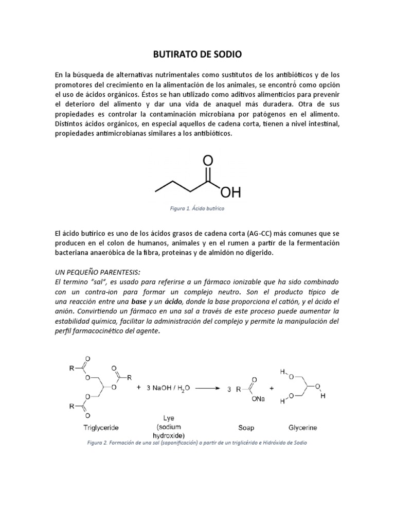 en aves), este libera rápidamente al sodio y, debido al pH bajo, el butirato se convertirá