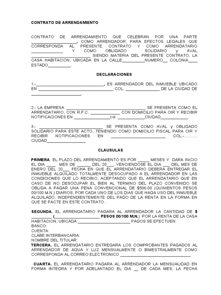 PRIMERA. EL PLAZO DEL ARRENDAMIENTO ES POR _____ MESES Y DARA INICIO