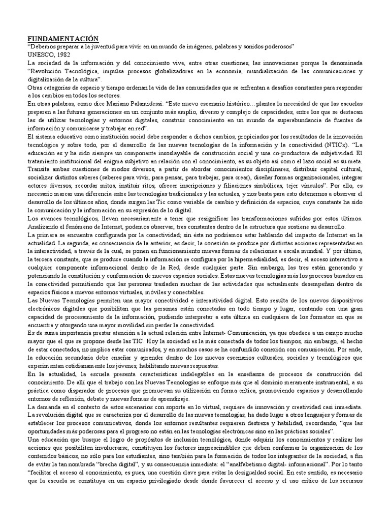 Las Nuevas Tecnologías de la Información y la Conectividad representan para la escuela secundaria uno de los elementos más