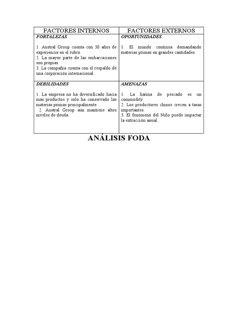 1. La empresa no ha diversificado hacia 1. La harina de pescado es un