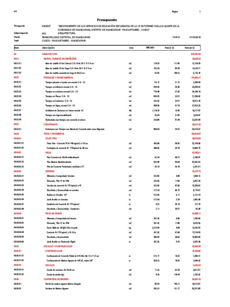 [Link] Concreto f'c=175 kg/cm², e=0.10 m m2 367.42 47.68 17,518.59