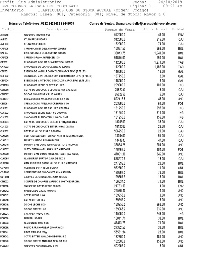 Números Telefónicos: 0212 2423492 / 2443657 Correo de Ventas: thamara.carballo@lacasadelchocolate.com