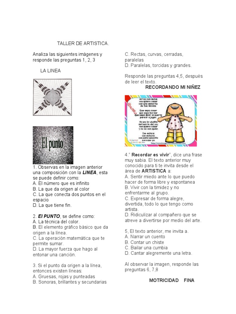 7. La MOTRICIDAD FINA, está en: 9. La expresión NOS VAMOS, PERO