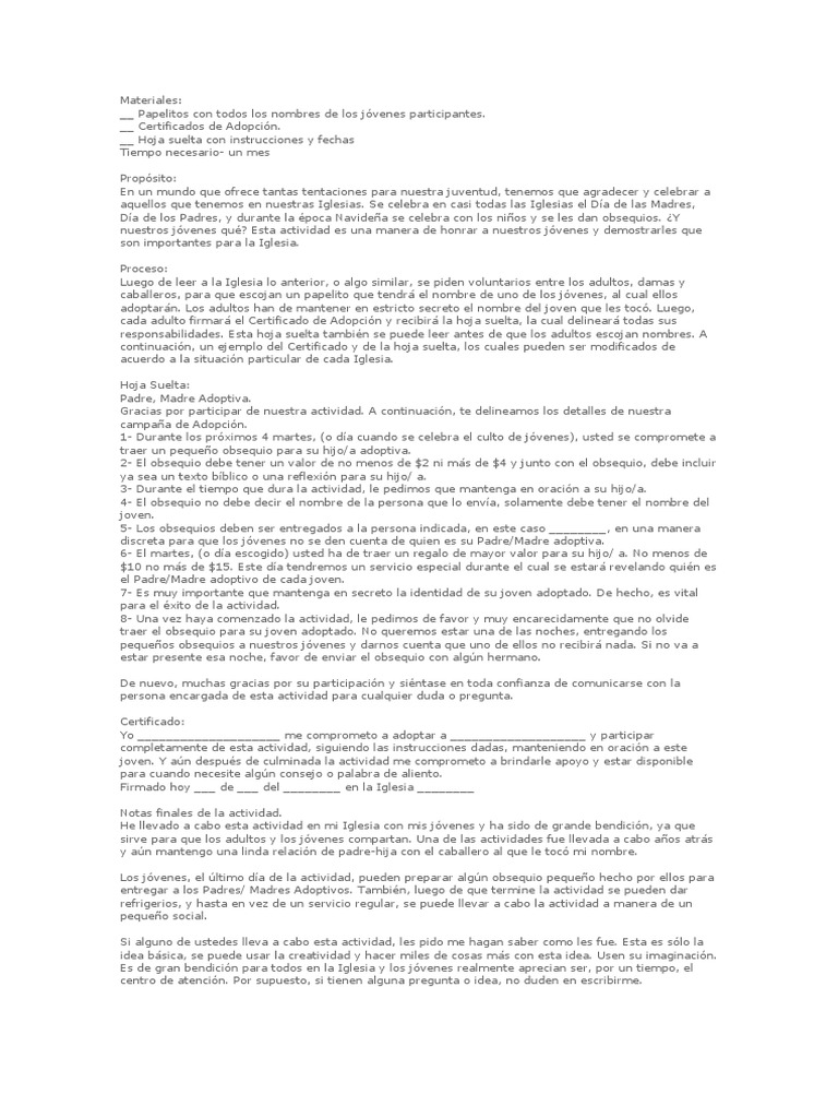 discreta para que los jóvenes no se den cuenta de quien es su Padre/Madre adoptiva.