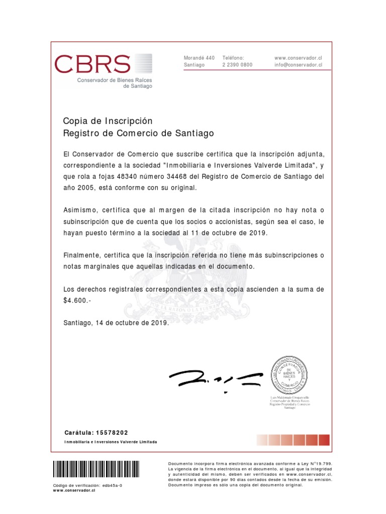 y autenticidad del mismo, deben ser verificados en www.conservador.cl,
