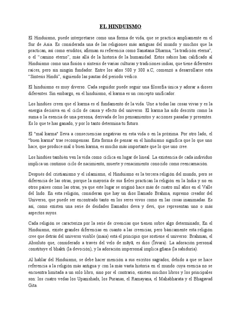 Al hablar del Hinduismo, se debe hacer mención a sus escritos sagrados, debido a que se hace