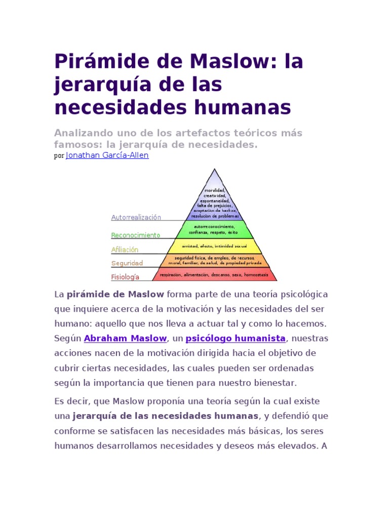 afiliación, de reconocimiento) y de “desarrollo del ser”