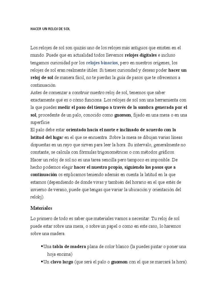 reloj de sol de manera fácil, no te pierdas la guía de pasos que te ofrecemos a