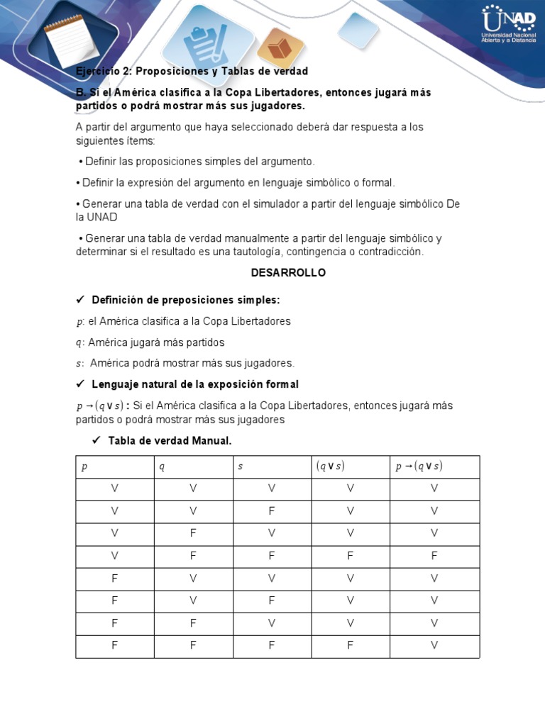 Ejercicio 2: Proposiciones y Tablas de verdad