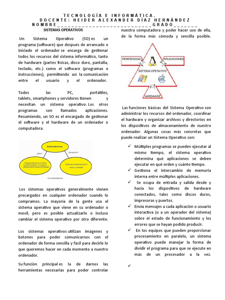 SISTEMAS OPERATIVOS nuestra computadora y poder hacer uso de ella,