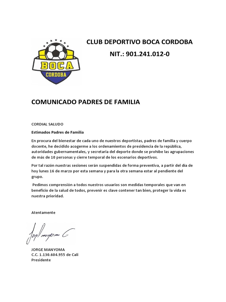 En procura del bienestar de cada uno de nuestros deportistas, padres de familia y cuerpo