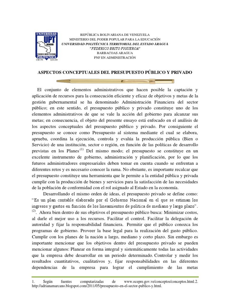 los aspectos conceptuales del presupuesto público y privado. Por consiguiente el