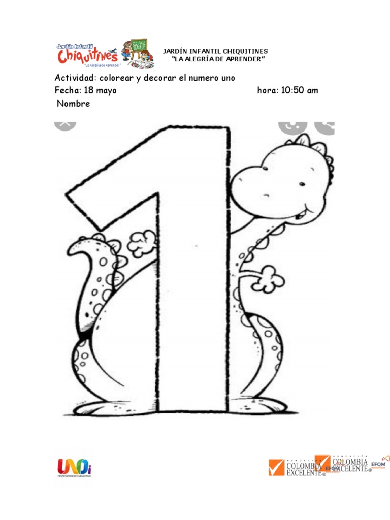 Los niños del jardín infantil Chiquitines decoraron y colorearon el número uno el 18 de mayo a las 10:50 am. El 20 de mayo a la misma hora realizaron otra actividad sin especificar el tipo.