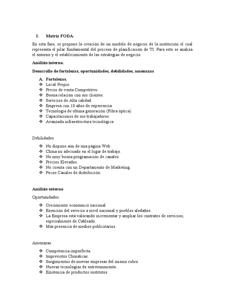 representa el pilar fundamental del proceso de planificación de TI. Para esto se analiza