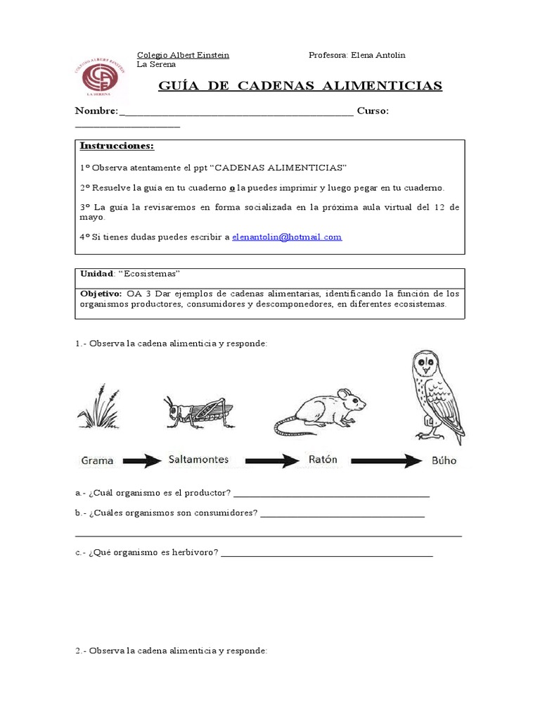Guía de Cadenas Alimenticias - 4° Básico Darwin