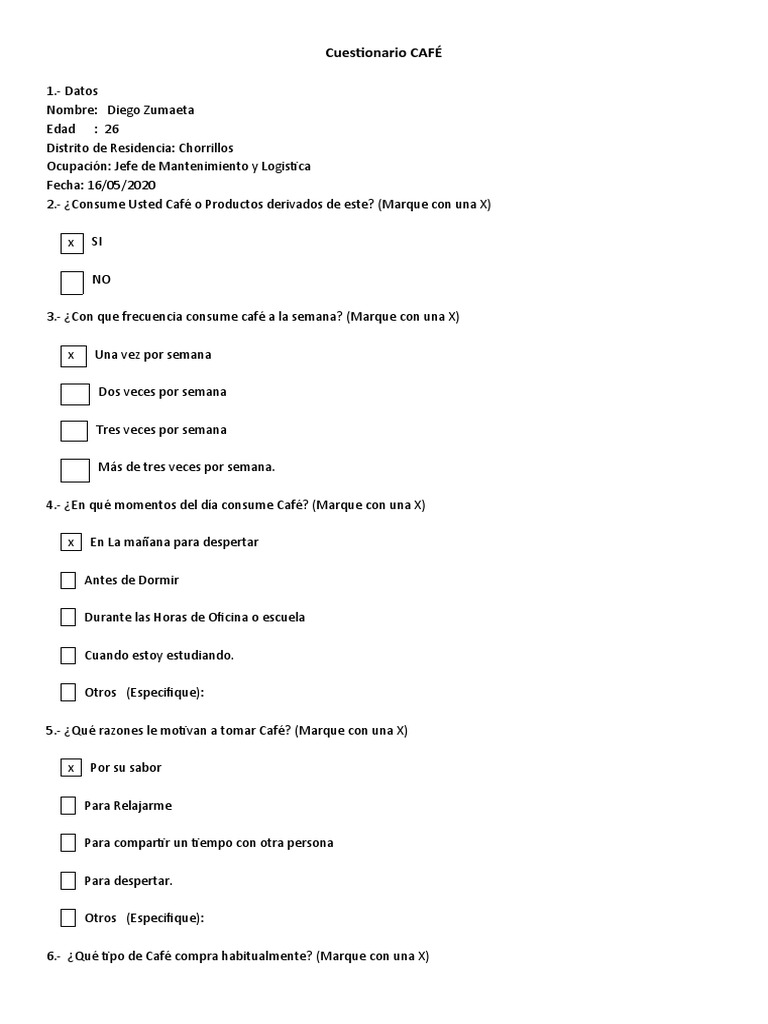 2.- ¿Consume Usted Café o Productos derivados de este? (Marque con una X)