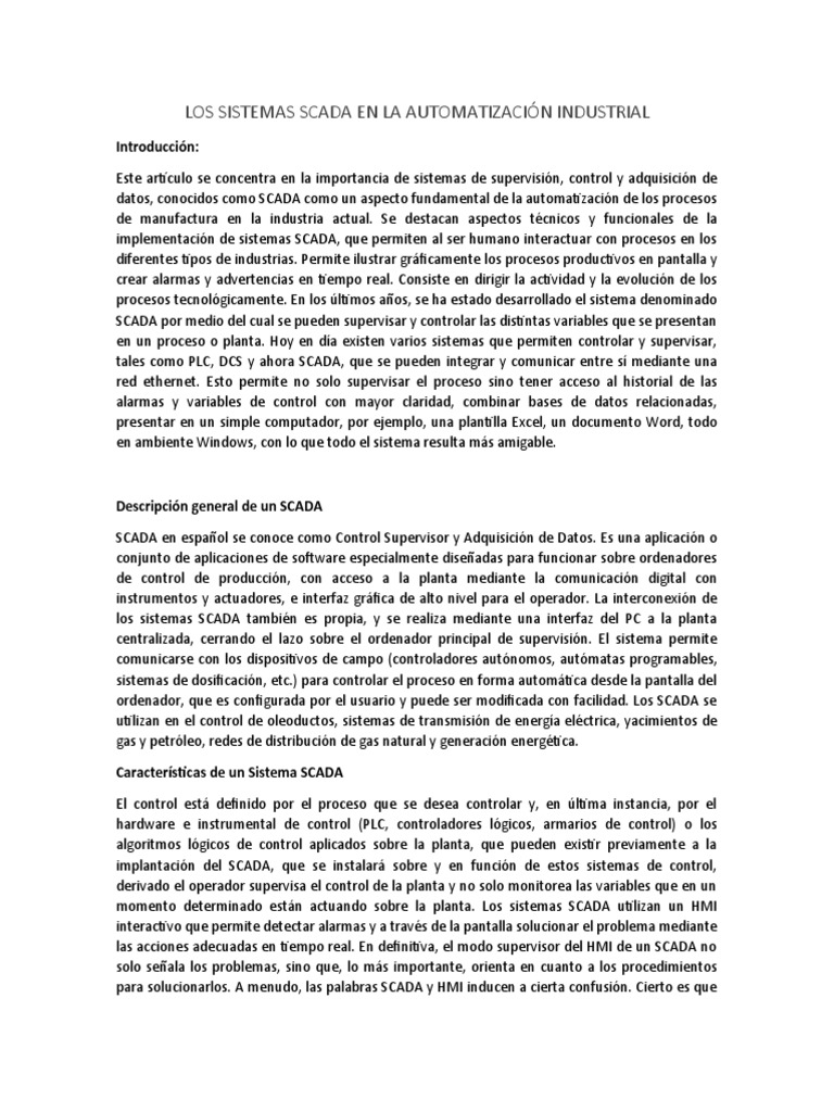 Este artículo se concentra en la importancia de sistemas de supervisión, control y adquisición de