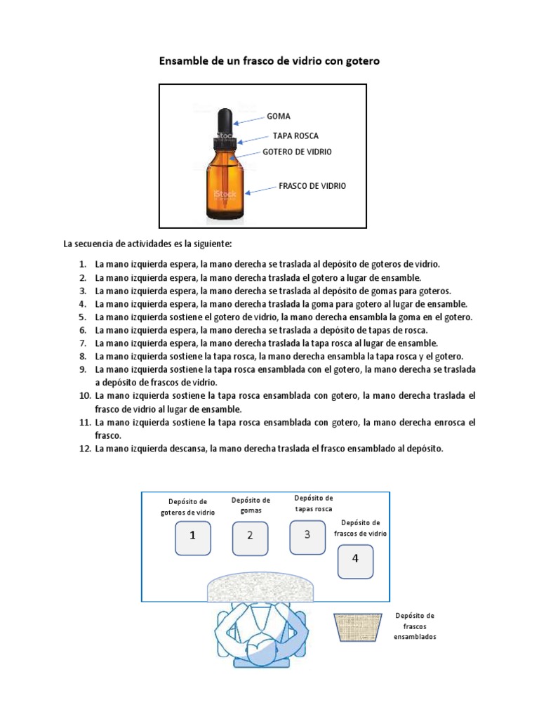2. La mano izquierda espera, la mano derecha traslada el gotero a lugar de ensamble.