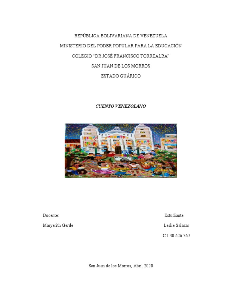 Anónimo (2017).Cuento venezolano. Disponible: brainly.lat .Consulta: (2020)