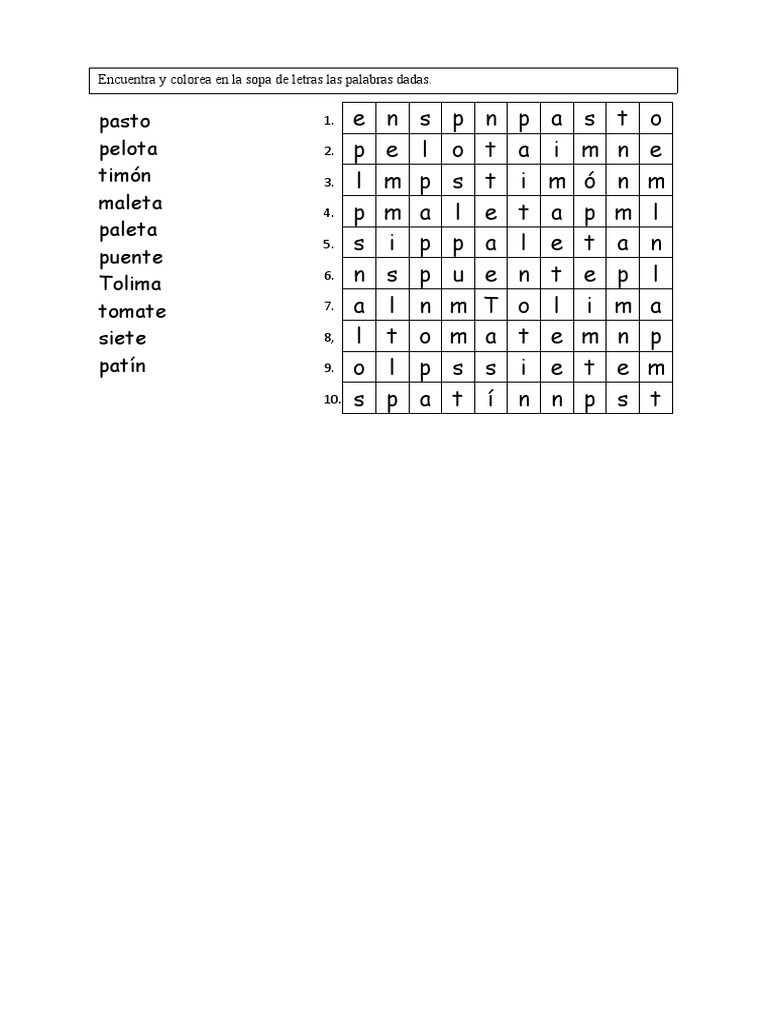 Encuentra y colorea en la sopa de letras las palabras dadas.