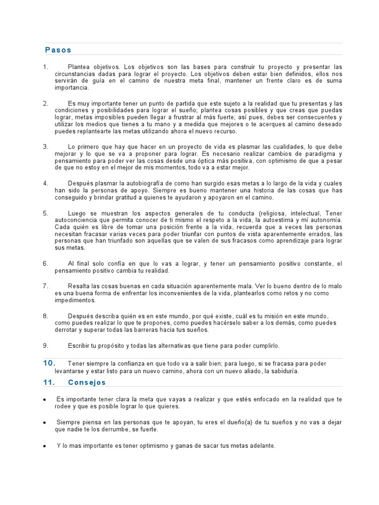 continuación escribo los pasos generales para elaborar un Proyecto de Vida.