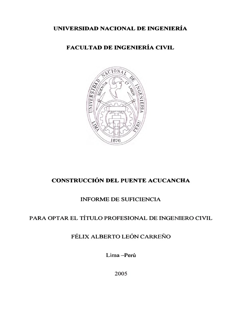 Titulo del Informe de Suficiencia: Construcción del Pue11te Acucanclla