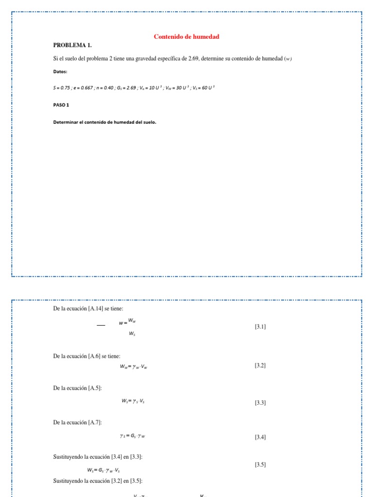 Si el suelo del problema 2 tiene una gravedad específica de 2.69, determine su contenido de humedad (w)