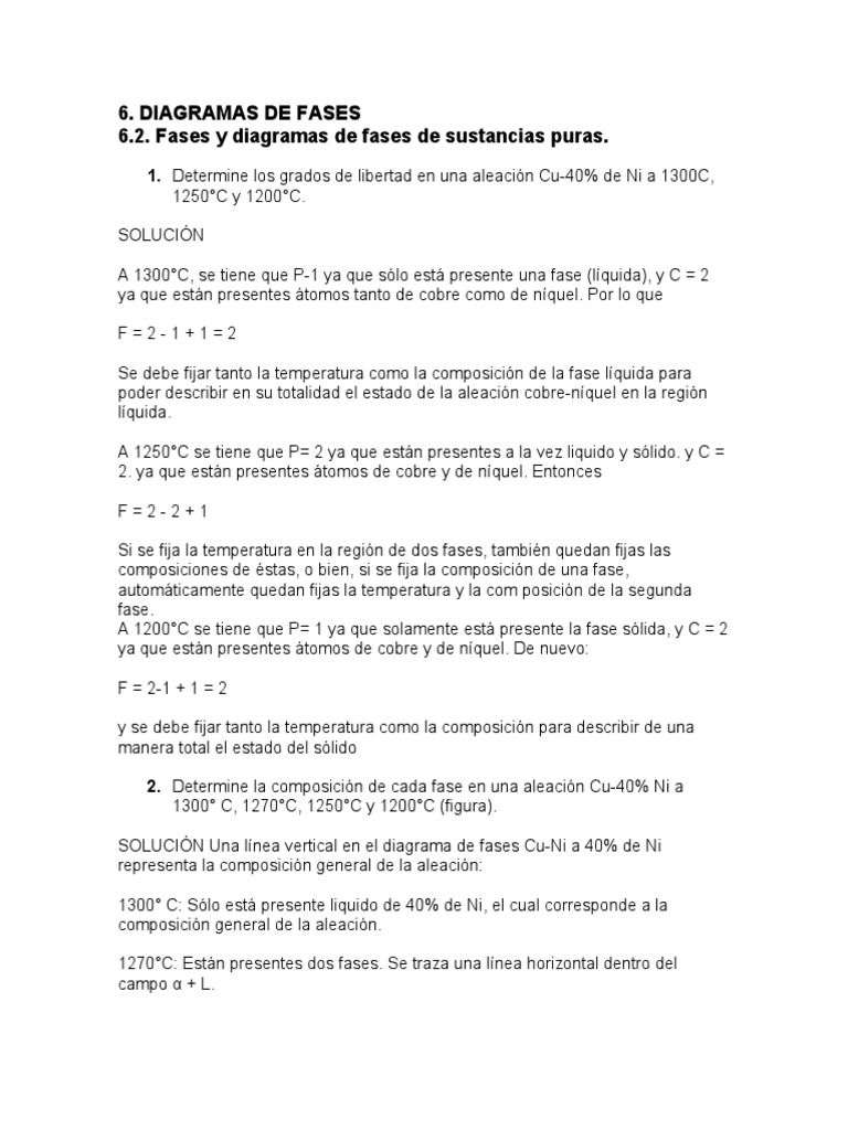 1. Determine los grados de libertad en una aleación Cu-40% de Ni a 1300C,