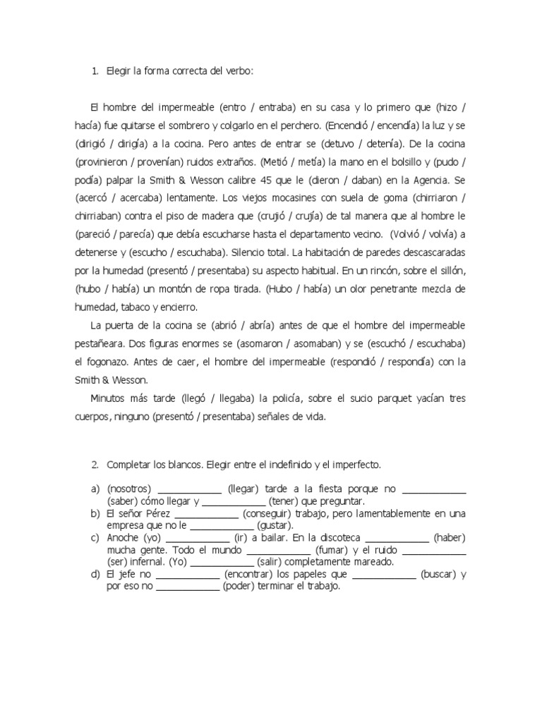 2. Completar los blancos. Elegir entre el indefinido y el imperfecto.
