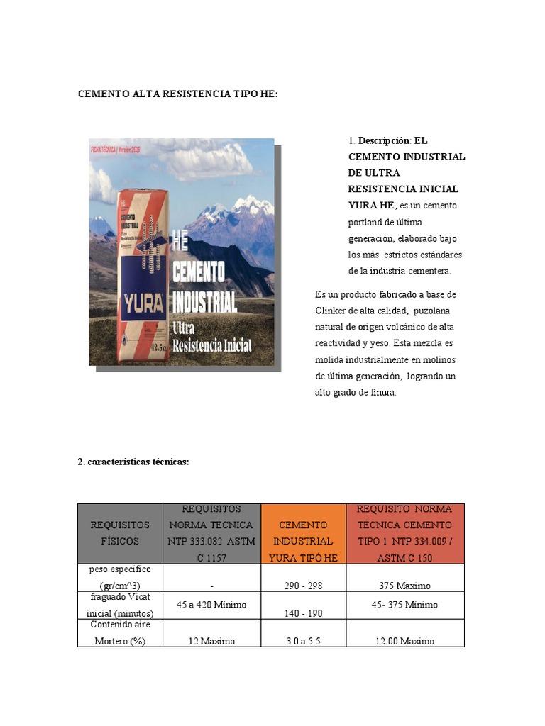 CEMENTO ALTA RESISTENCIA TIPO HE: