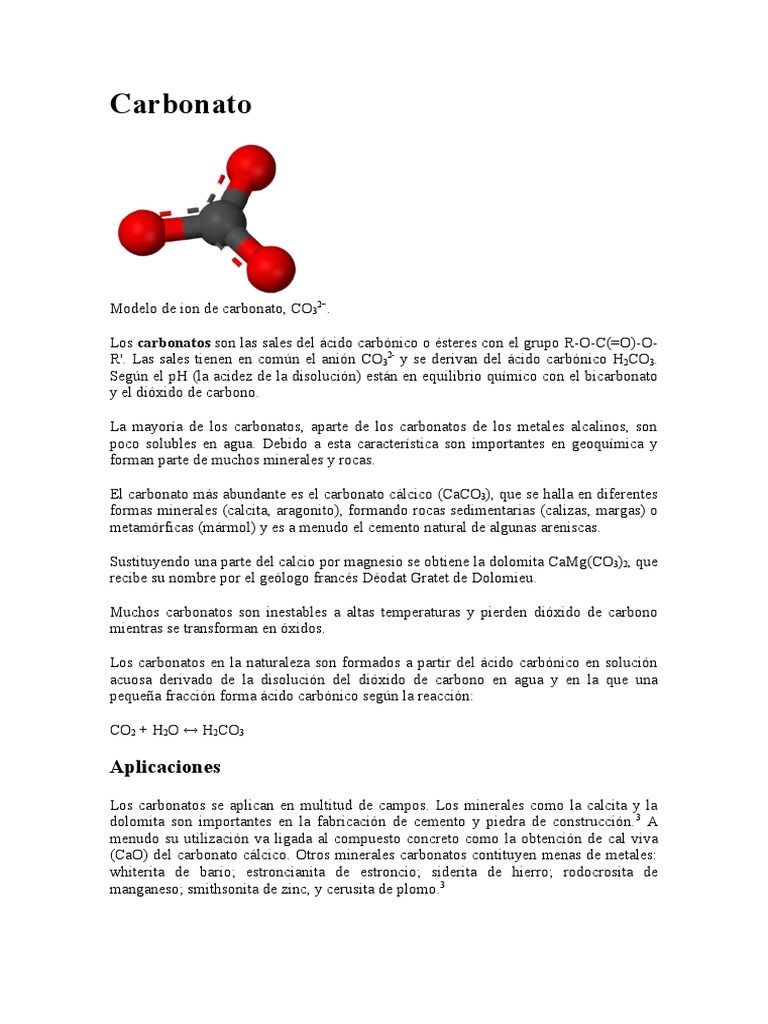 Los carbonatos en la naturaleza son formados a partir del ácido carbónico en solución