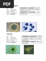 Penicillium: Presentan hifas con tabiques (hifas septadas) y sus espores se forman en el interior de