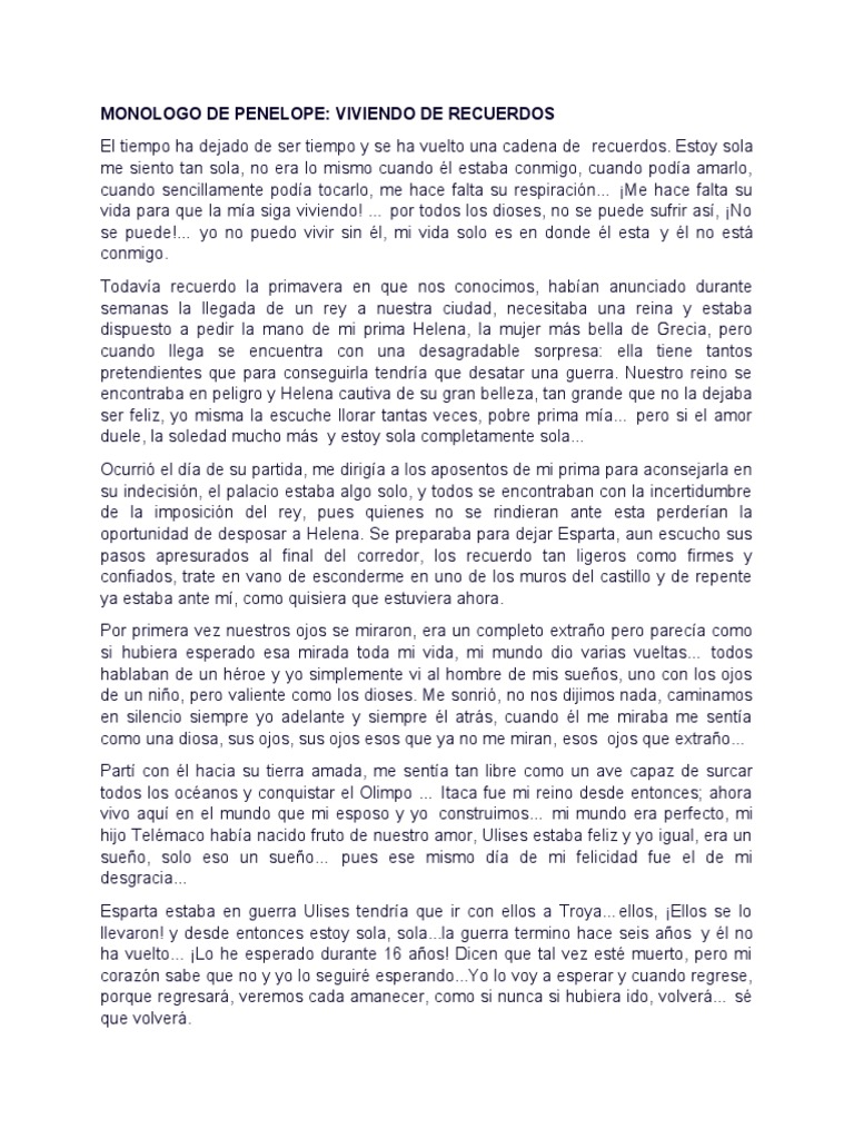 MONOLOGO DE PENELOPE: VIVIENDO DE RECUERDOS