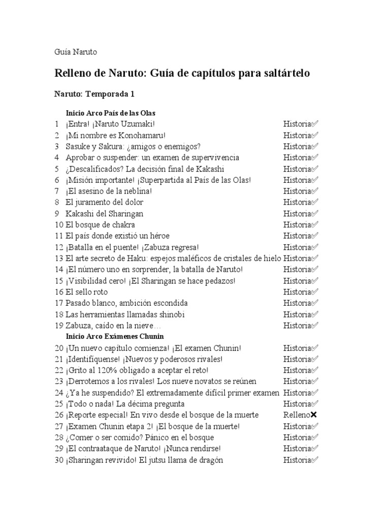 Relleno de Naruto: Guía de capítulos para saltártelo