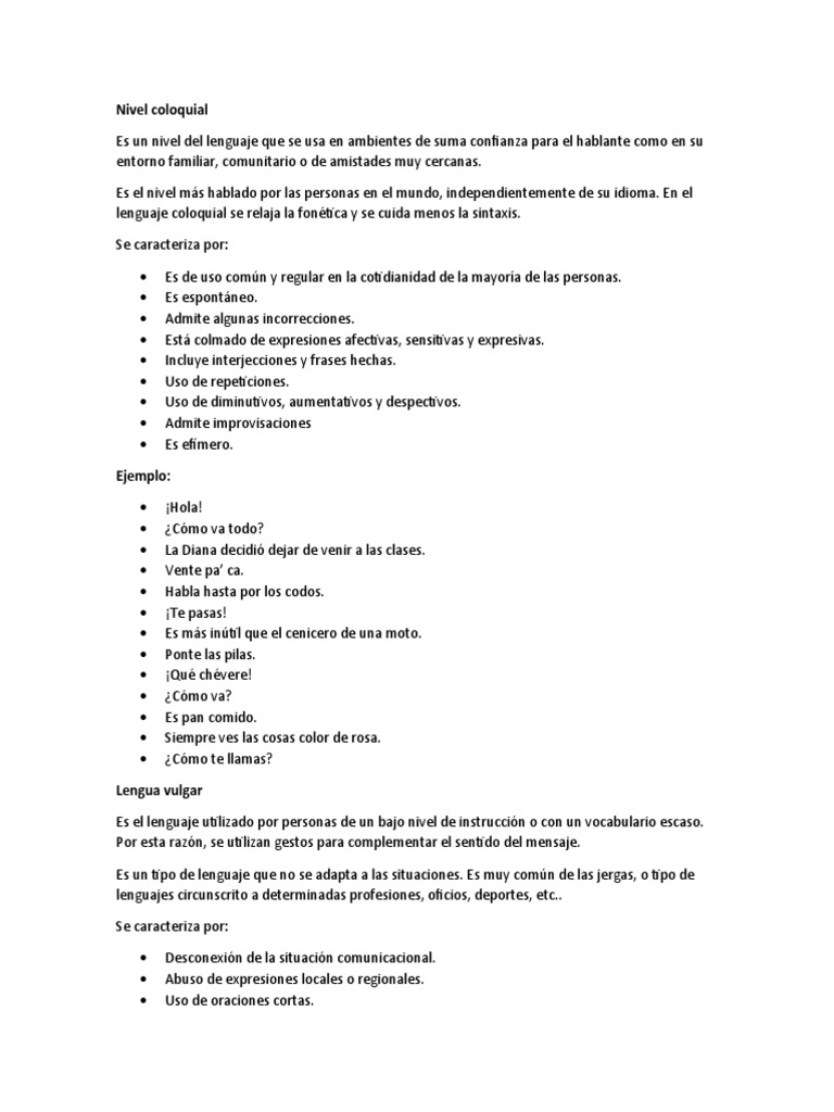 lenguaje coloquial se relaja la fonética y se cuida menos la sintaxis.