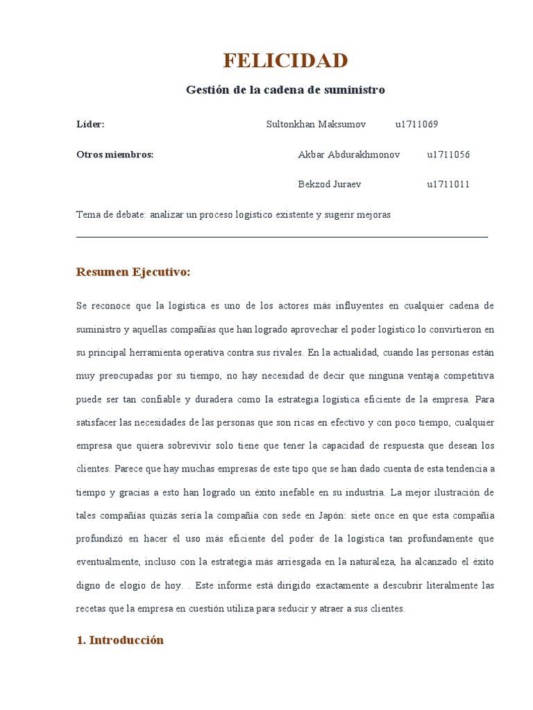 Tema de debate: analizar un proceso logístico existente y sugerir mejoras