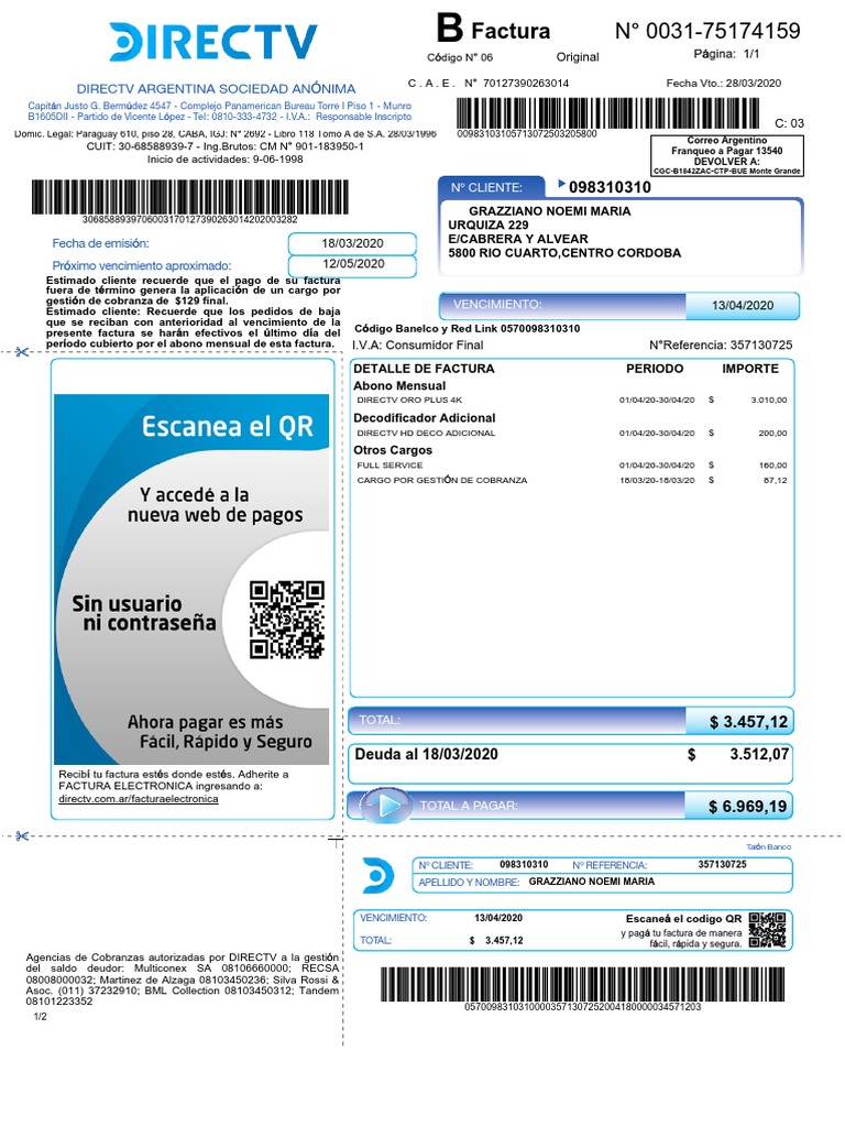MÁS INFORMACIÓN SOBRE SU FACTURA directv.com.ar/midirectv