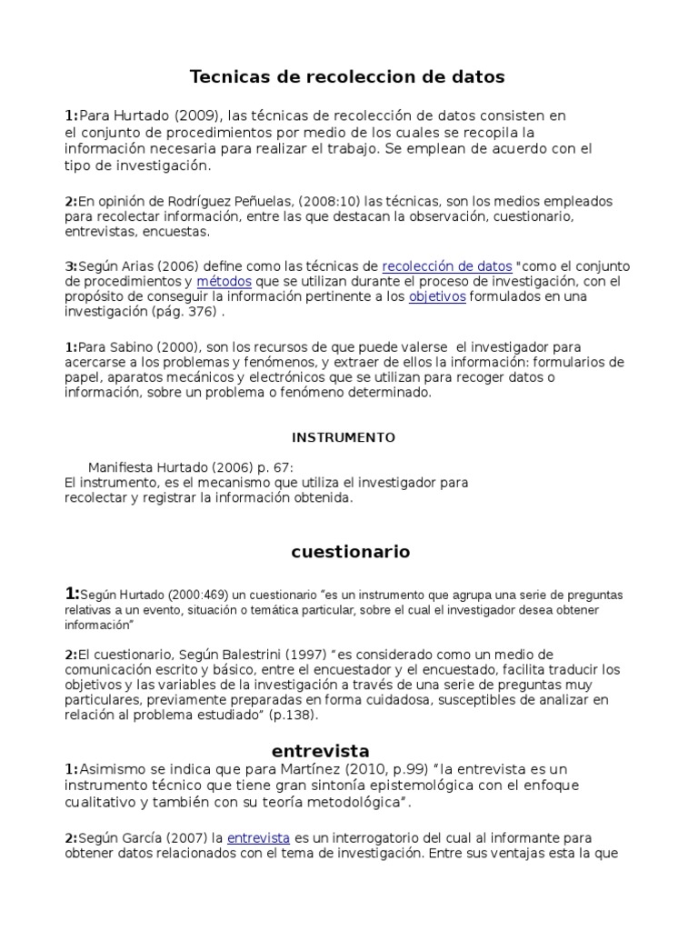 1:Para Hurtado (2009), las técnicas de recolección de datos consisten en