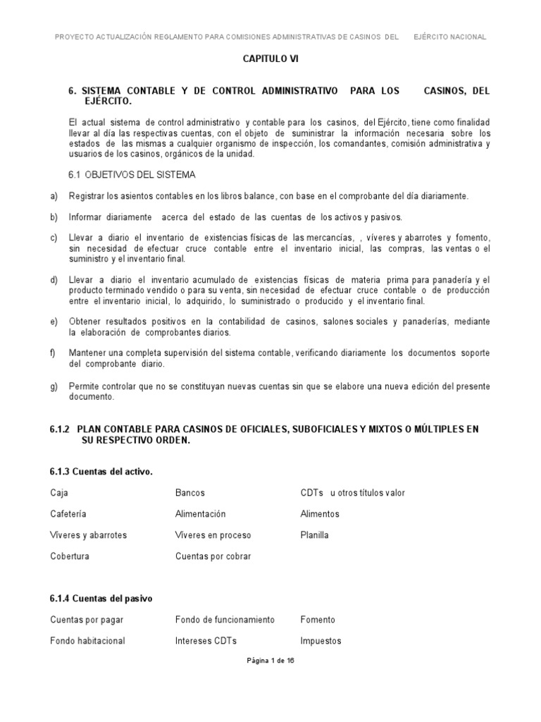 PROYECTO ACTUALIZACIÓN REGLAMENTO PARA COMISIONES ADMINISTRATIVAS DE CASINOS DEL EJÉRCITO NACIONAL